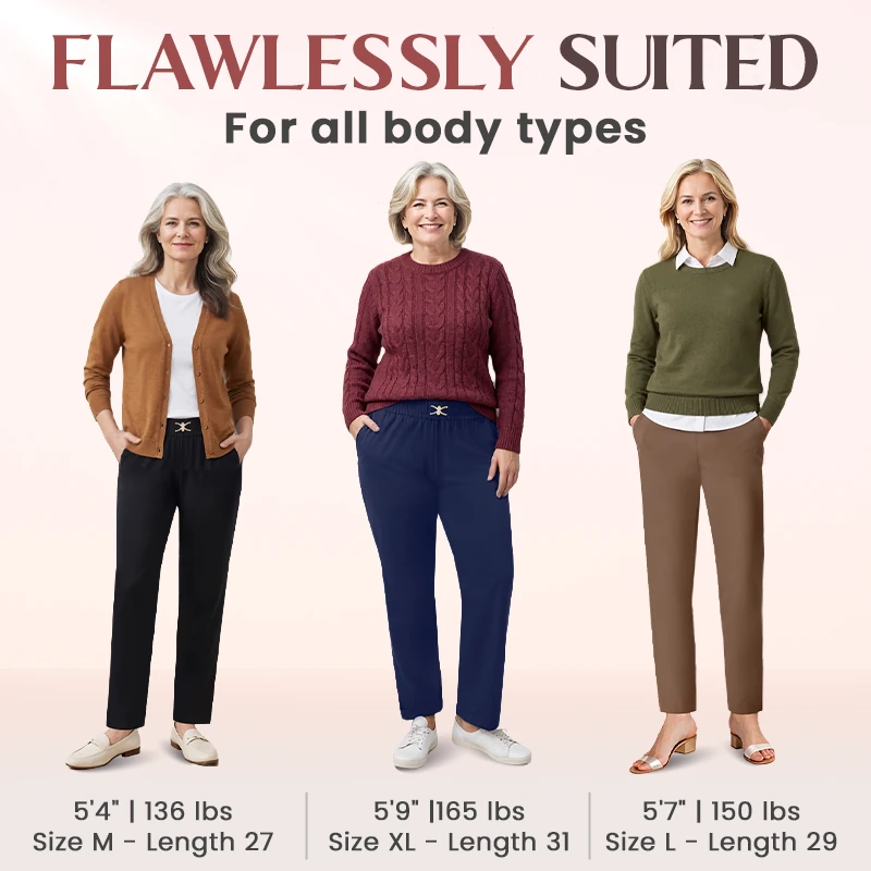 At 62, my weight fluctuates, and these pants adapt perfectly. No pinching, no rolling waist, just smooth and flattering. The leg cut makes me look taller!